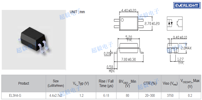 亿光贴片光耦EL3H4-G参数与尺寸: